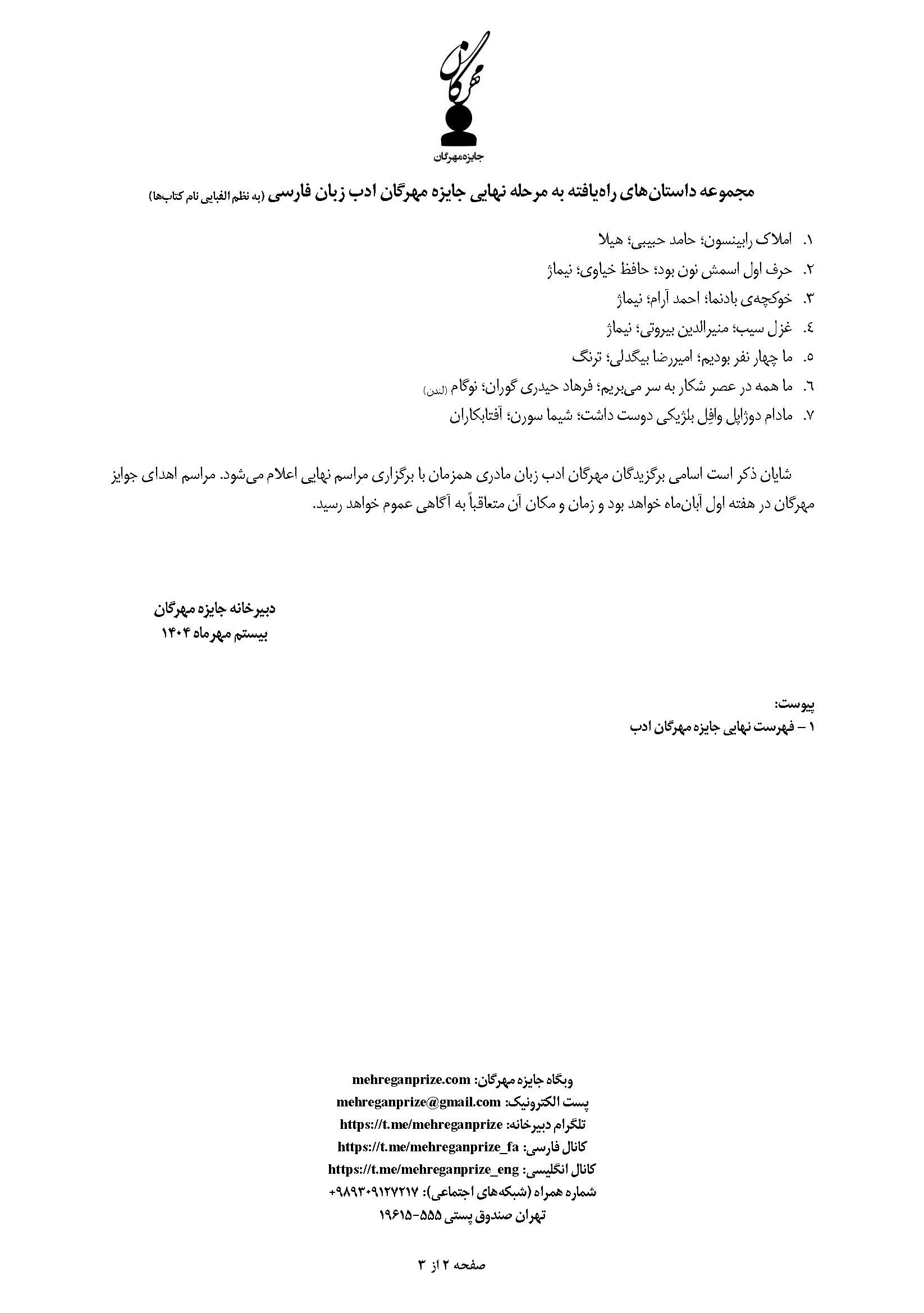 وبگاه جایزه مهرگان: mehreganprize.com